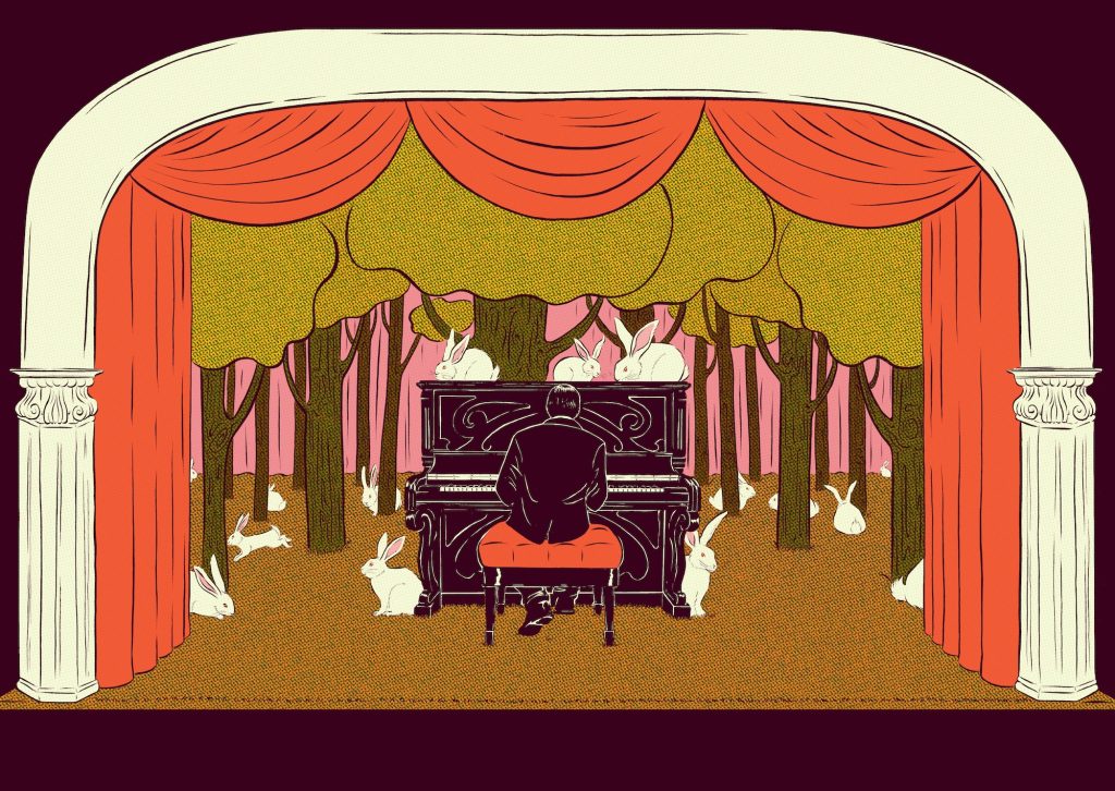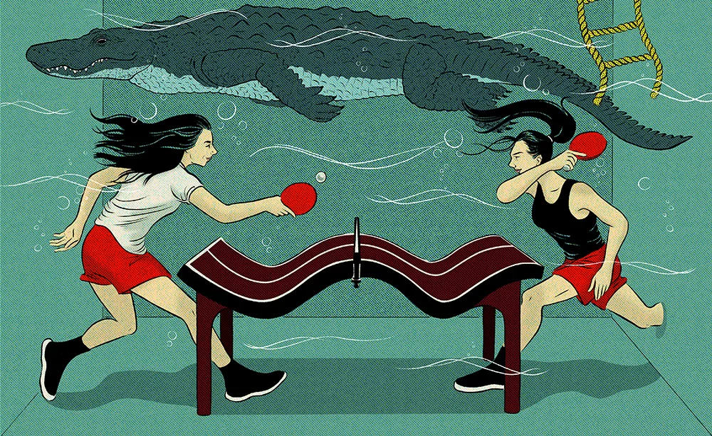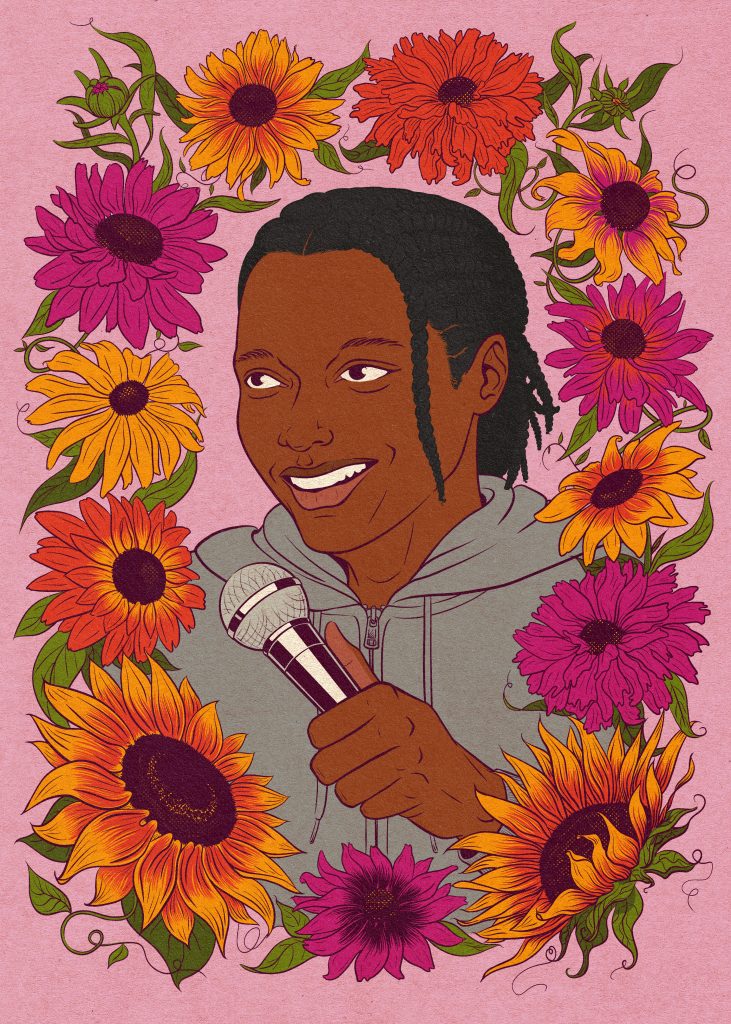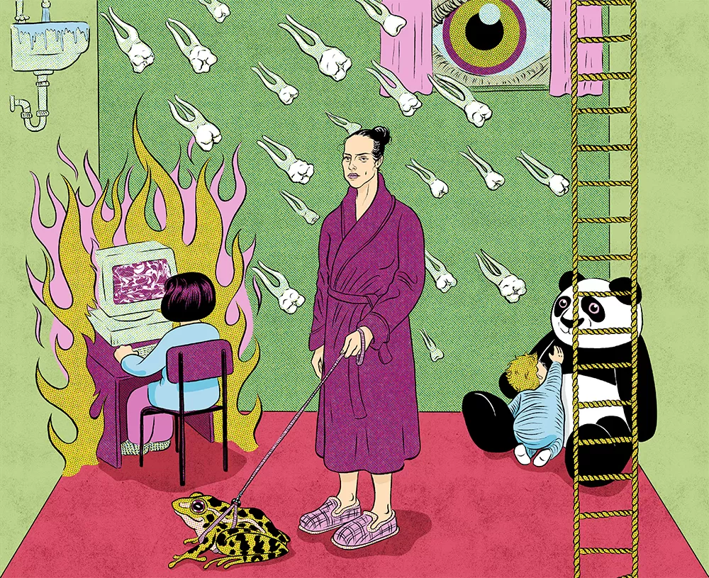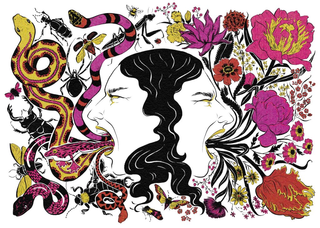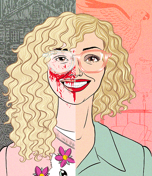 illustration of journalist Coco Khan as a left wing Barbie doll in her box with accessories to organise